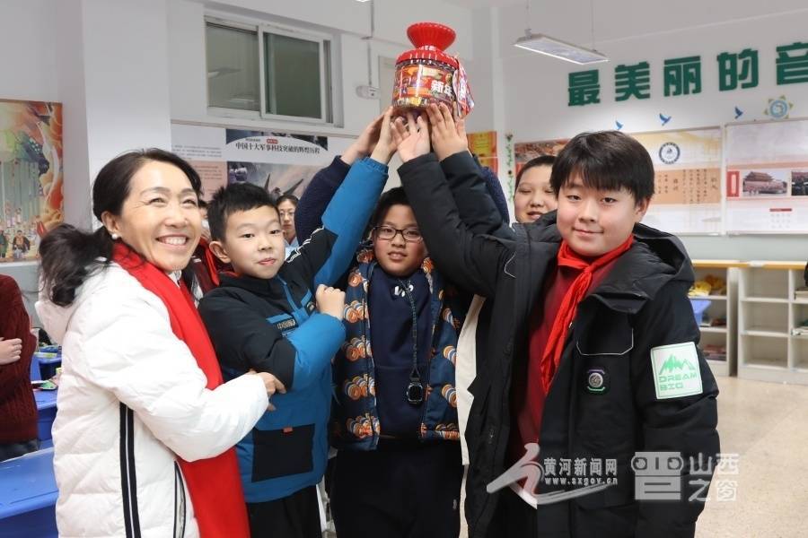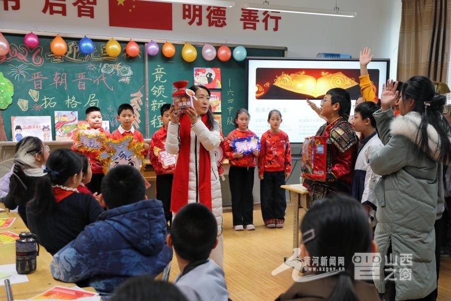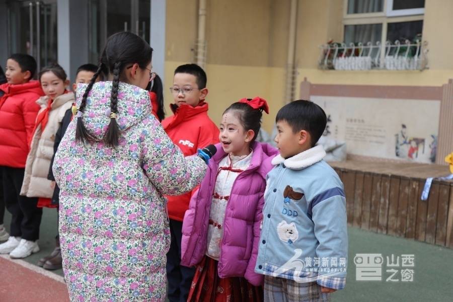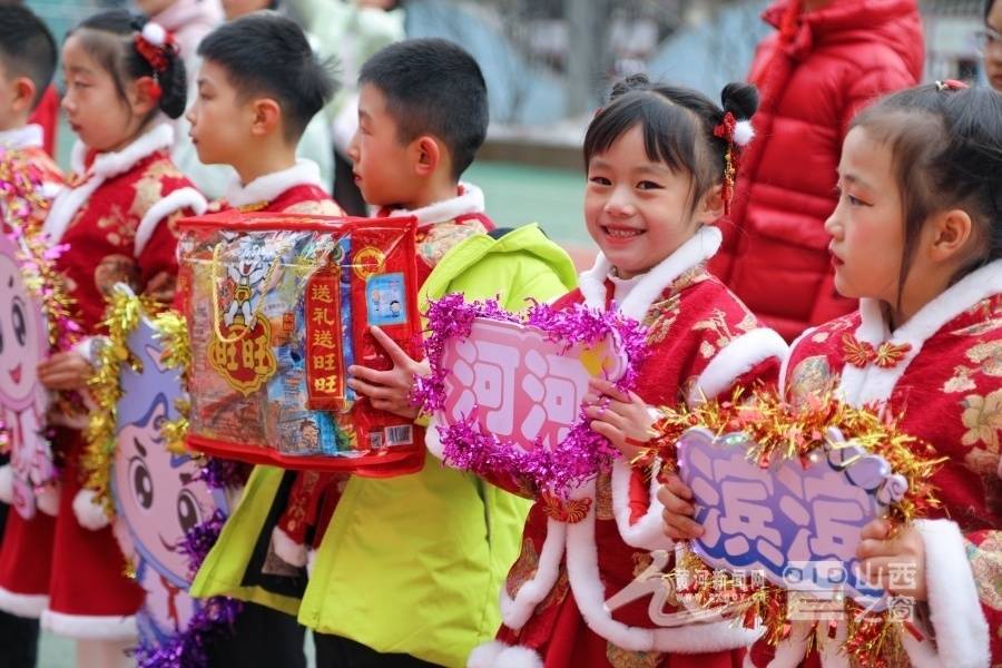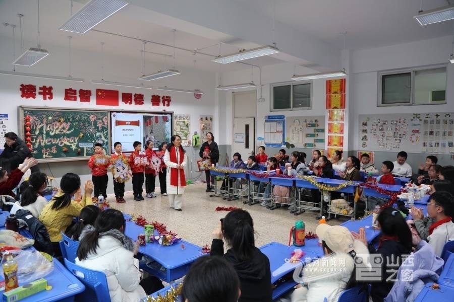 r12月31日,太原市滨河小学洋溢着浓厚的迎新氛围。操场上,全体师生齐聚一堂,共迎新年。学校特别选出的“晋娃”吉祥物团队,与老师、校长一同走进各个班级,为同学们送上真挚的节日祝福。教室里,问答互动环节气氛热烈,孩子们积极抢答、笑声不断,赢取奖品的脸上绽放着灿烂的笑容。